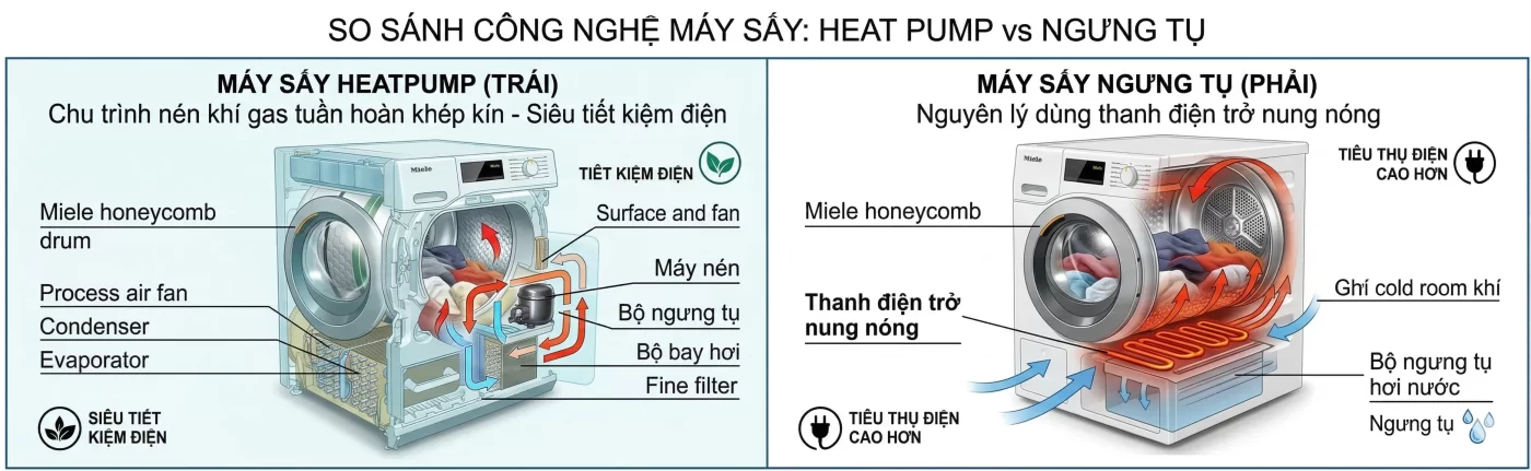 So Sánh Máy Sấy Heatpump Và Ngưng Tụ: Giải Mã Trận Chiến Định Hình Lối Sống Thượng Lưu