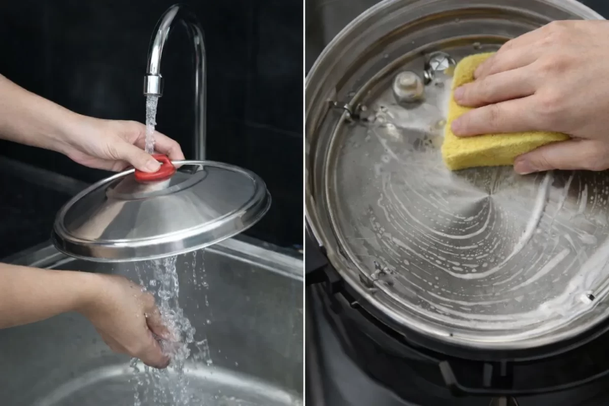 - Rủi ro: Nếu nước rửa chảy vào khe bản lề xuống mạch điện bên dưới, nồi có thể bị chập cháy.