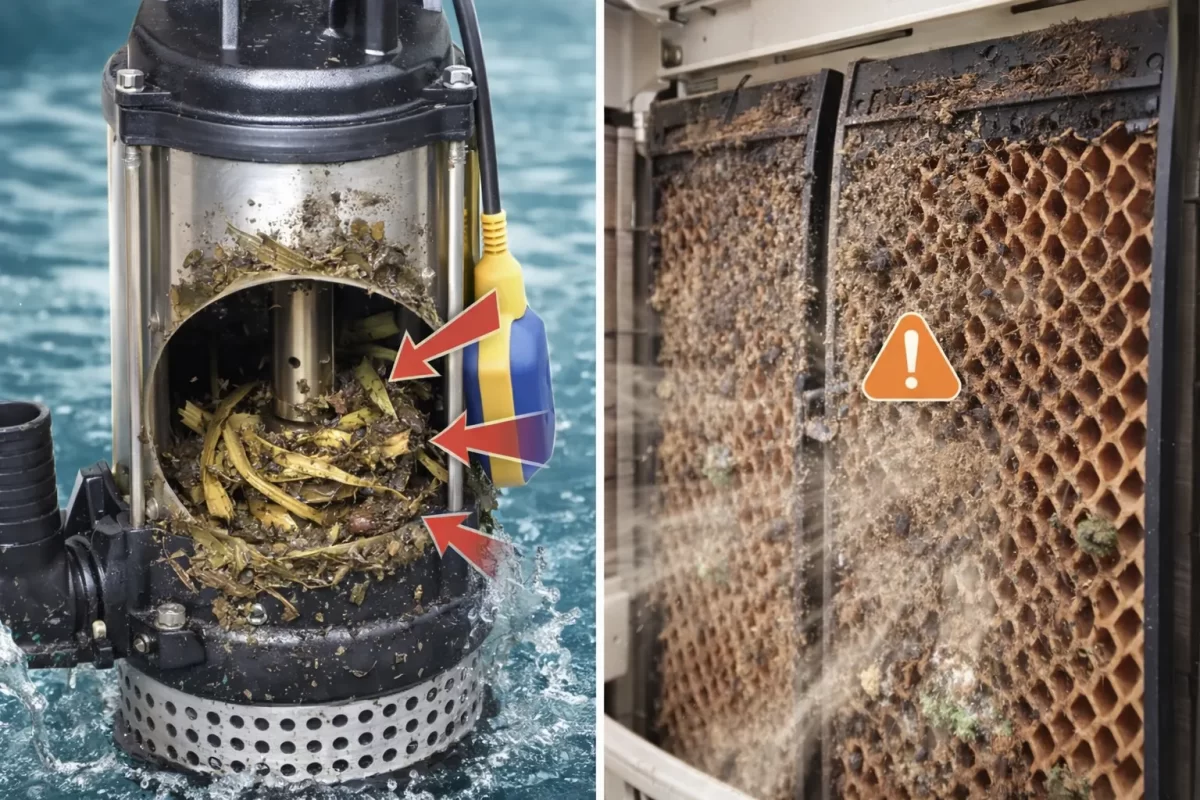 - Lỗi kẹt rác ly tâm: Nước trong bình chứa quạt điều hòa tuần hoàn liên tục và hứng chịu toàn bộ bụi bẩn trong không khí do lồng quạt hút vào. Hỗn hợp bùn đất, tóc rụng và xác muỗi sẽ nhanh chóng tích tụ dưới đáy bình. Cánh quạt ly tâm nhỏ bé của máy bơm rất dễ bị kẹt cứng bởi các chướng ngại vật này.