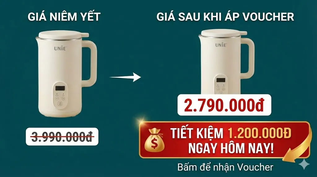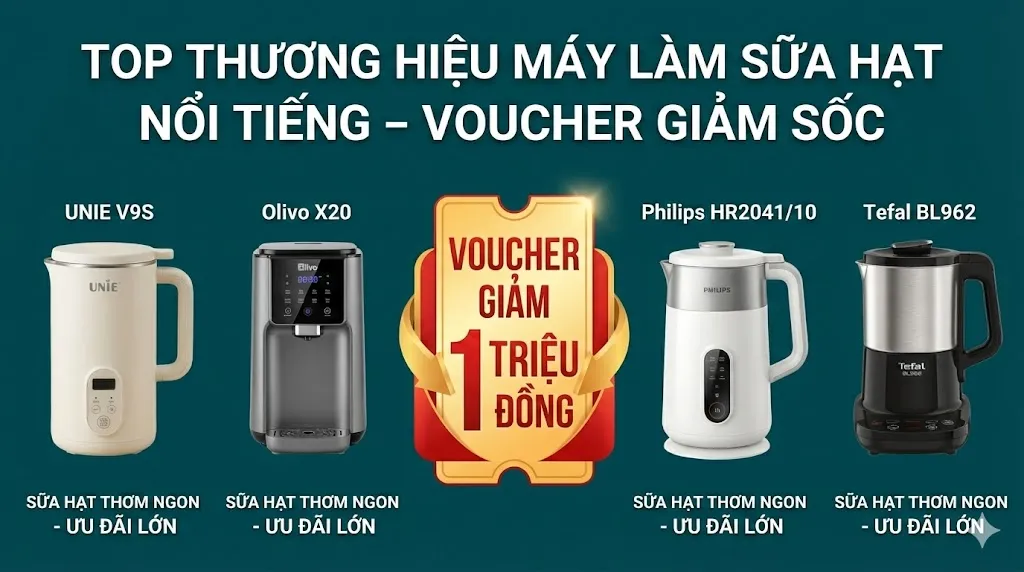 Nhưng bạn có biết, vào các ngày hội mua sắm lớn (Mega Sale), các nhãn hàng và sàn thương mại điện tử thường tung ra những Voucher giảm giá máy làm sữa hạt có giá trị cực khủng, từ 500.000đ đến 1.000.000đ? Nếu biết cách săn, bạn hoàn toàn có thể sở hữu những chiếc máy này với giá chỉ bằng một nửa giá siêu thị.